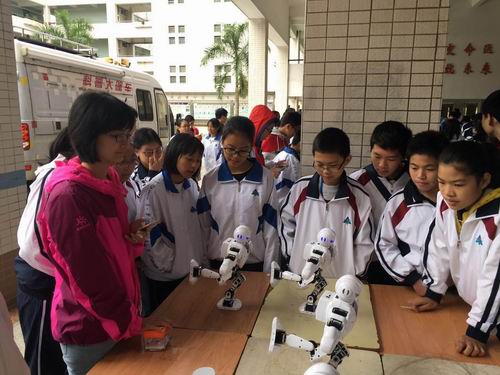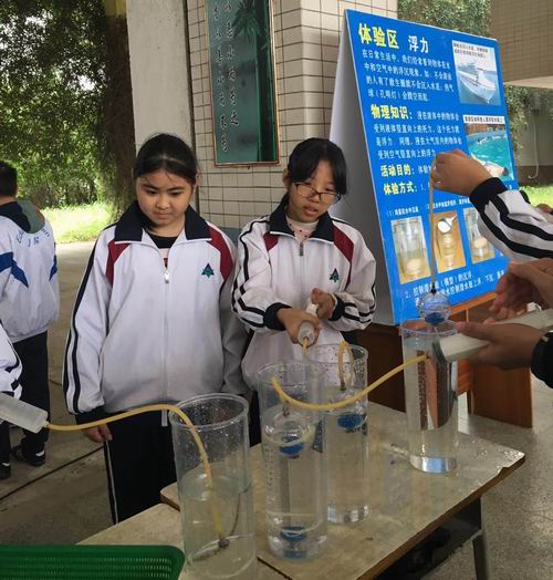 这次科技创新节内容丰富多彩,不仅组织了“教育城初中第二届青少年科技创新实践能力挑战赛 (主题:水火箭)”,设置了大气压强体验区(包括纸片托水实验、空瓶吸水实验、拉皮碗)、流速与压强体验区(包括不听话的乒乓球、吸管吹水,电磁发电体验区:手摇发电机、自制微形风扇发电机)、浮力体验区(包括鸡蛋的浮沉、潜水艇的浮沉)等体验区供学生们自由参观和体验,还组织初一学生即兴技艺表演“萝卜牙签塔”、展示纸火箭、纸牌塔、塑料瓶车等科技成果,更有学生感兴趣的科普大蓬车进校园以及机器人表演等,精彩纷呈,快乐无极限。