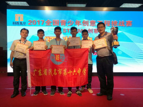 5月20日,从首都北京传来喜讯,茂名市十六中科技创新团队作为广东唯一进入全国赛的团队,在比赛过程中,选手们不畏强敌,奋勇拼搏,沉着应战,在强手如林的赛场上战胜北京、衡水、山东等地传统名校,勇夺冠军,再次在全国赛上展示茂名学子良好的竞技状态和精神风貌,为广东省、茂名市争得了荣誉。