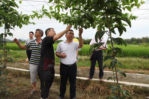 这次培训邀请了茂名市水果科学研究所副所长钟声前来授课,重点讲授了种植百香果技术。钟声通过平实、易懂的语言,深入浅出地为群众上了一堂生动的培训课。同时,还通过现场交流互动和到种植田间地头参观指导,切实为种植户解决技术难题。参加培训的一位老伯说,家里种植了2亩百香果,现在正是挂果的时节,但在种植过程中,遇到很多需要解决的技术问题,通过参加这次培训,提高了种植技术水平,解决了一些技术难题,相信今年的百香果一定是个丰收年,非常感谢茂名市科协开展“科技助力精准扶贫行动”。