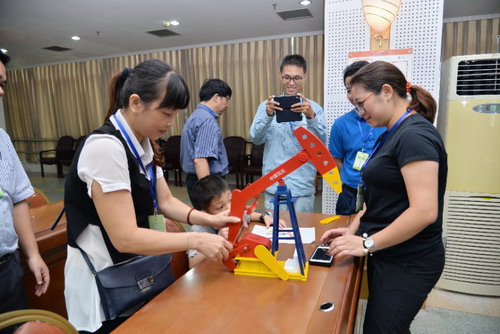 参观团亲身体验并开展石油开采机械拼装有奖游戏