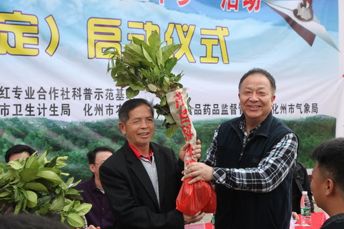 启动仪式上,茂名市科协向当地种植户赠送了500多株化橘红果苗,并发放了一批化橘红、龙眼种植技术和养鱼、养猪等科技书籍,把农民群众需要的精神食粮和文化科技卫生服务送到田间地头。