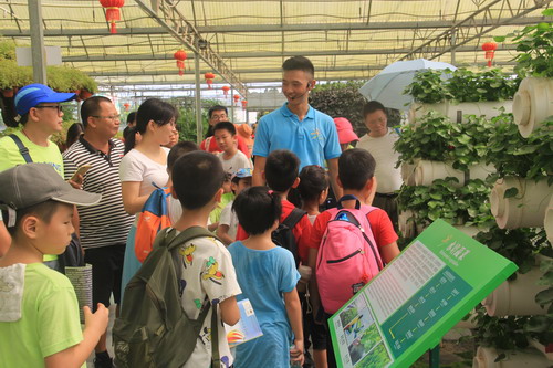 在公园讲解员的引导下,学生和家长们首先参观了农业嘉年华游乐园。学生们对“农业嘉年华——蔬之物语”展馆的高科技栽培蔬菜表现出了浓厚的兴趣和求知渴望,通过讲解员对植物种植科普知识的讲解,让大家感受到各种廊架种植的艺术之美和无土栽培的现代农业种植魅力的同时,也品尝了一个生动丰富的蔬菜文化大餐。随后,学生和家长们还分别参观了“农业嘉年华——瓜样年华”、“农业嘉年华——灵草秘境”展馆和儿童乐园等,被馆内的迷你家族区植物和奇瓜异形区植物所深深吸引。该馆的现代农业立体栽培技术、互动体验以及动漫文化,展现了一个轻松、多彩、娱乐的瓜果乐园,还让大家体验了自然之美、探索了科学之妙,寓教于乐,并在玩乐中学习到现代农业种植科学知识。