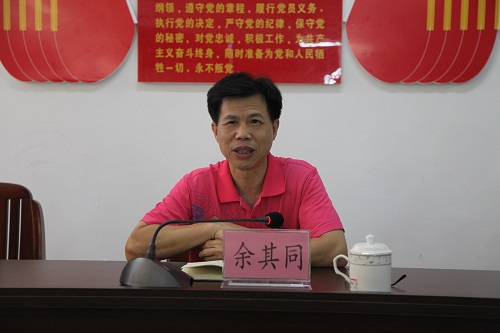 茂名市科协党组书记、主席余其同在纪念建党98周年座谈会上讲课