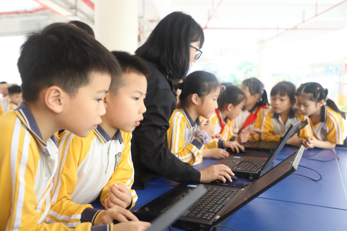 茂名市微思特教育、广东清北创客教育科技有限公司给学生们带来了机器人表演、无人机竞技、声控小车互动、电脑编程展示、创新作品展出等科技竞技活动项目,工作人员指导师生进行了操作体验。