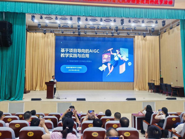 珠海夏湾中学吴泽铭副校长以“AIGC跨学科教学”为主题,通过实际案例解析人AI工智能工具在教学中的创新应用,为教师提供了可落地的策略指导。