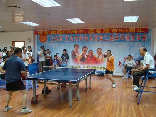 茂名市科协举办乒乓球比赛迎接我国首个“全民健身日” 2009-08-14 来源: 【字体:小 大】 阅读: 次 2009年8月8日,为庆祝建国60周年和茂名建市50周年,迎接我国首个“全民健身日”,活跃茂名市科协系统干部职工的文体生活,鼓励广大科技工作者积极参与体育活动,茂名市科协举办了“众和杯”茂名市科协系统第二届乒乓球团体赛。全市包括茂名市科协机关、各县(市、区)科协和部分市直各学(协)会以及赞助企业共24支队伍参加了本届比赛。(刘永林 文/图) 分享到: