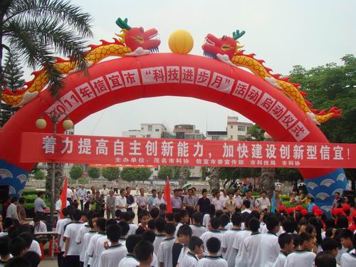 5月11日,茂名市信宜市淘金湾广场人头涌涌,热闹非凡,由茂名市科协、信宜市委宣传部、信宜市科技局、信宜市科协联合主办的2011年信宜市“科技进步活动月”活动启动仪式暨大型科普宣传活动正式拉开序幕。茂名市科协主席蔡映秋、信宜市副市长封小翠出席了启动仪式并讲话,茂名市各县(市、区)科协主要领导、信宜市属各学(协)会和有关学校师生共300多人参加了启动仪式。启动仪式还为信宜市首届“科技杯”摄影大赛获奖者进行了颁奖。