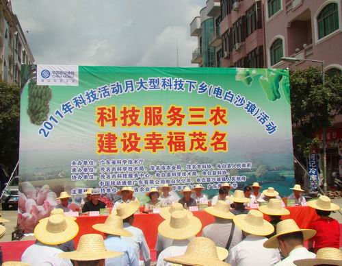 6月8日,茂名市以“科技服务三农,建设幸福茂名”为主题的2011年科技活动月大型科技下乡活动在电白县沙琅镇举行。广东省科技厅、茂名市科技局、电白县政府有关领导分别在启动仪式上作了讲话,并为科技特派员颁发了证书,向基层村委会赠送科技书籍和科普资料。活动由广东省科技厅主办,茂名市科技局、茂名市农业局、茂名市科协、电白县政府承办,茂名市科技服务中心、电白县科技局、电白县科协、中国移动通信广东有限公司电白分公司、沙琅镇政府协办。