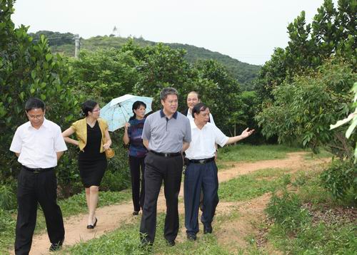 杨豪标(左四)到茂名高州市根子镇柏桥村兴发果场示范园参观