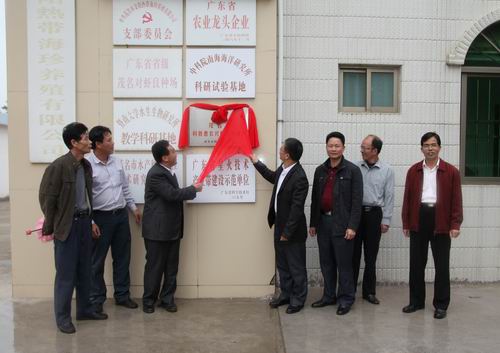 4月11日下午,茂名市科普惠农兴村示范基地揭牌仪式在茂名市金阳热带海珍养殖有限公司举行,这是茂名首家被命名为科普惠农兴村示范基地的海珍养殖公司,茂名市科协主席蔡映秋出席并揭牌。