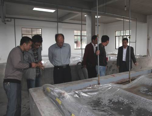 图为参加揭牌仪式领导参观公司的海珍繁育基地