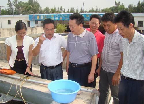 为切实做好2013年广东省“院士专家企业工作站”调研考察的准备工作,10月12日上午,茂名市科协党组书记、主席朱建雄在副主席黄少兰陪同下,到茂名市金阳热带海珍养殖有限公司实地考察“广东省院士专家企业工作站”建设工作准备情况,与公司管理人员座谈,听取公司董事长、总经理李活关于建设“广东省院士专家企业工作站”的工作汇报,并提出意见和建议。