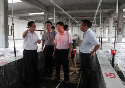 省科协副巡视员汤少明(右二)实地考察茂名市金阳热带海珍养殖有限公司养殖基地