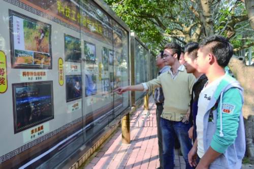 12月5日,茂名市科协在市区油城四路中心广场科普画廊举办首届全市科技工作者书画和摄影艺术展,展出一批优秀的书画和摄影获奖佳作。吸引许多市民前来观赏。