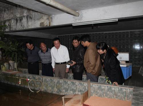 茂名市沙琅龟鳖业协会负责人向调研组人员详细介绍了协会的发展历程和辐射带动全镇及周边地区农民养殖龟鳖致富工作情况,并提出了协会在发展中遇到的困难。朱建雄对该协会的成功养殖经验及带领当地农民养殖致富的成功做法给予充分肯定,他指出,作为一个这么有生命力、发挥如此大作用的基层行业协会,市县两级科协一定想方设法争取党委政府和上级科协的扶持,继续把协会事业做大做强。他要求,协会要与时俱进,走规范化、规模化、产业化道路,要从服务农民养殖为出发点,在养殖技术、信息传递上下功夫。他希望,协会要以当前大好市场形势为契机,继续加大养殖致富信息宣传力度,力争做到龟鳖产销一体化,使沙琅镇真正成为名符其实的全国龟鳖第一大镇,为建设社会主义新农村作出积极贡献。