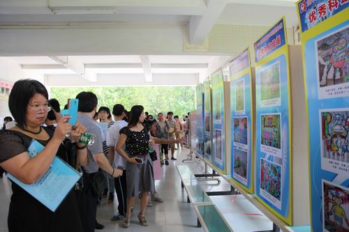 随后,与会人员现场观摩了科技创新成果展。本次成果展展出了2014年茂名市科技创新大赛优秀获奖作品和项目,市十六中演示了获奖科学DV视频,展出了科学实验大赛承重结构及桥梁设计、木刻版画及科技摄影作品,由学生参与的大连环、水火箭、多米诺骨牌等现场活动精彩纷呈,博得大家的一阵阵喝彩声;茂名市十七中的机器人、模拟飞行、皮影戏、纸杯绘画、地理模型等成果展示,融入更多的科技创新元素,凸显学校开展青少年科技教育工作的新亮点。参加、观摩本次活动的学生纷纷表示,这次科技创新成果展为他们提供一次非常难得的学习交流机会,既开阔了眼界,又拓展了他们的科技创新思维,激发他们参加科技创新活动和学科学、讲科学、爱科学的兴趣。