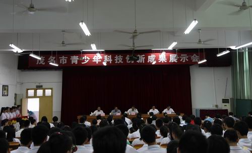 在科技成果表彰会上,吴忠耀代表学校致欢迎辞,朱健超总结了2013-2014年度茂名市青少年科技创新活动开展情况和取得的成效,李挺宣读了表彰决定,会上还对获得茂名市首届青少年科技节优秀组织单位、2014年茂名市青少年科技创新大赛优秀辅导教师以及第29届广东省青少年科技创新大赛获奖学生进行了表彰。