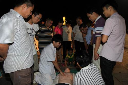 医务人员现场为市民做单人徒手心肺复苏术