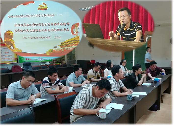 7月28日,梅州市科协开展党日活动,邀请市委宣传部理论科黄立基科长上党课,市科协党组书记林华玲,党组成员钟立强、刘海祥、曹学军及科协机关、市科技馆全体党员参加学习。