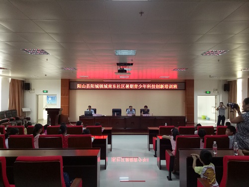 8月23日上午,阳山县科协会同阳城镇城南东社区在县科技馆七楼学术报告厅举办“暑期青少年科技创新培训班”,阳城镇城南东社区组织了本社区中小学生93名参加了培训。