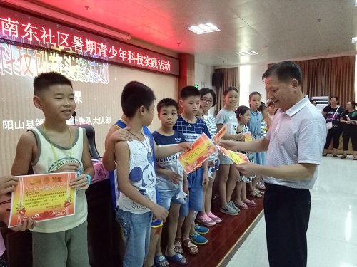 阳山县科协黄建军主席为获奖学生颁奖