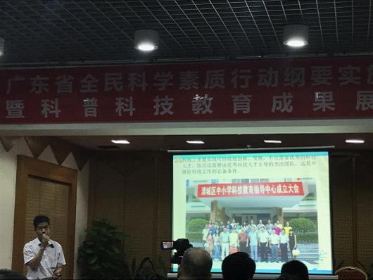 7月7日-8日,由广东省教育研究院举办的广东省科普科技教育经验交流暨成果展示活动在广州顺利举行,来自全省地级以上市教育局教研室(教科院、教研室)、部分省属中小学、中等职业学校、幼儿园等100多名科技工作者参加了会议,清城区中小学科技教育指导中心副主任汤锦洪出席并在会上作经验介绍。