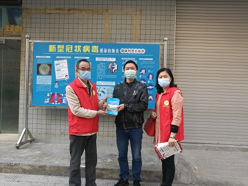 潘木祥一行向社区工作人员派发宣传资料