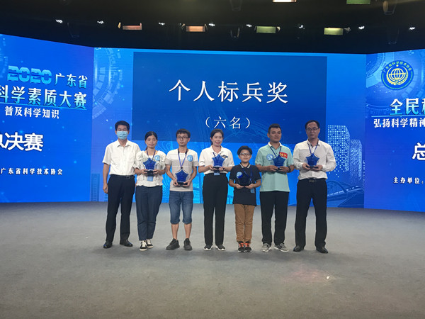 清远市梁雄润(左二)选手获得“全民科学素质个人标兵奖”