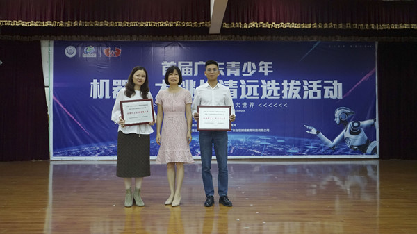 活动能顺利进行,离不开各单位的支持和配合。清远市科学技术协会副主席汤方敏为承办方清远市清城区新北江实验学校以及广东创世博维教育科技有限公司颁发鸣谢牌匾。