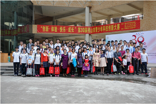 参加第30届佛山市青少年创新大赛的获奖学生和科技辅导员合影