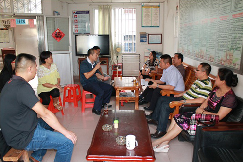 谢志强、谭志东、罗丽庄、黄婉明、白志彪等领导与社区班子成员座谈