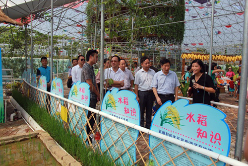 2015年9月19日为全国科普日,当天上午,广东省科学技术协会副巡视员、秘书长汤少明等一行三人到佛山市高明区“全国科普教育基地”广东盈香生态园科普教育基地调研科普工作。佛山市高明区委常委管雪,高明区人大常委会副主任龙启,高明区政府政务委员、高明区经济和科技促进局局长谢志强,高明区政协副主席罗远光,高明区科学技术协会主席谭志东等陪同调研。