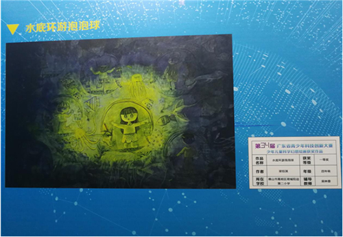 佛山市高明区荷城街道第二小学梁钰淇的《水底环游泡泡球》科幻绘画获一等奖
