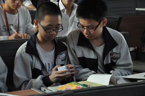 佛山市高明区沧江中学生正在探索试用教授提供的发明创新实物载体