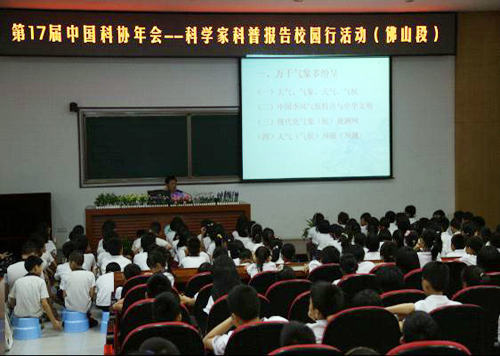 2015年5月22日上午,以“播种科学种子,点燃科学梦想”为主题的第17届中国科协年会——科学家科普报告校园行活动(佛山段)走进了佛山市顺德区一中附小新德业学校。