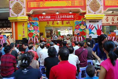日前,传承与创新——工艺美术展览在东方书城隆重召开。本次活动吸引了广佛两地工艺美术届的专家、科技工作者参加,佛山市科协副主席黄文出席开幕式并致辞。此次展览经过近一年的筹备,主要展示了刺绣、彩瓷、金箔、纸类编织等传统或新兴的工艺美术品。为响应“广佛同城”的号召,还邀请了广州部分工艺美术名家的作品参展。