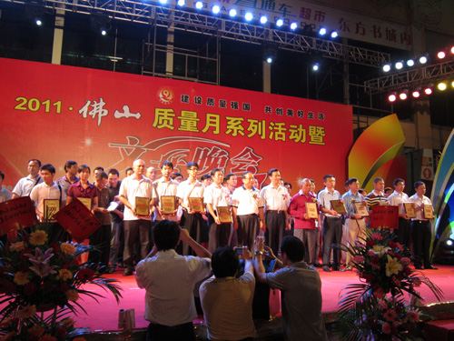 2011年9月29日晚,佛山质量月系列活动暨文艺晚会在东方广场隆重举行。本次活动由佛山市质量管理协会主办,出席晚会的有市委、市政府、市经贸局、市质监局、市科协等单位领导以及企业代表等。首先,佛山市政府副秘书长周文和市经贸局李德先后为本次活动致辞。