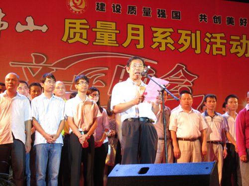 企业代表宣读《2011年佛山市“质量月”质量诚信倡议书》
