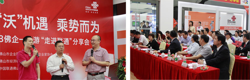 4月25日,佛山市科协所属市信息协会在由佛山经济和信息化局支持下,联合佛山市企业联合会、市企业家协会、佛山日报主办,佛山联通协办的2013年佛企一日游“走进联通”分享会举行。100多位企业家代表济济一堂,就如何充分利用信息化建设实现企业跨越式发展进行深入的交流和分享。