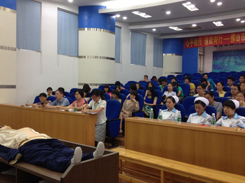 10月14日下午,由佛山市护理学会妇委会组织的“心手相传•健康同行”急救技术展示会在佛山南海信息技术学校举行。会议旨在提高广大人民的急救能力,普及急救知识,在紧急情况发生时,能够懂得自救和施救。展示会由佛山市护理学会急诊专业主任委员、佛山市第一人民医院急诊科护士长罗银秋进行了徒手心肺复苏、异物卡喉、现场止血包扎这三个急救技术知识的讲解以及急救小组成员作现场操作示范。