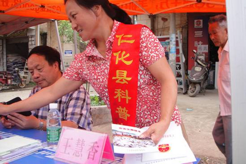 仁化县科普志愿者、科普带头人王慧香为群众咨询