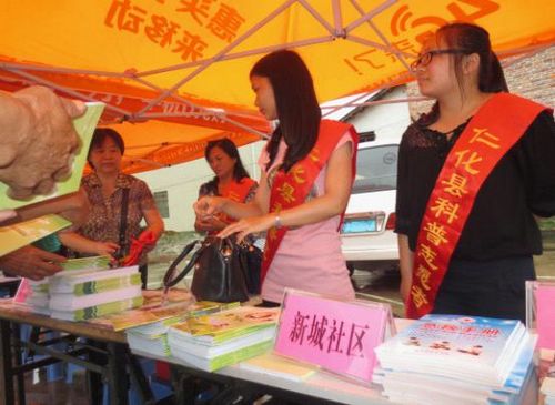 为全面贯彻落实《全民科学素质行动计划计划纲要》和《中共广东省委、广东省人民政府关于加强新时期科协工作的意见》,结合关于组织开展好2014年主题科普活动的工作要求, 6月6日上午,由中共仁化县委宣传部、县科协、科技局、教育局组织实施,县水务局、农业局、林业局、卫计局、环保局等33个部门和单位参与的2014年仁化县“科技进步活动月”科技集市闻韶行活动在闻韶镇文化广场举行。