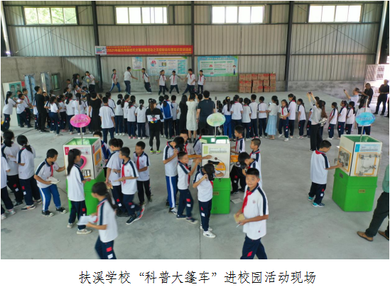 科普大篷车暨无偿献血科普知识进校园活动在扶溪学校同时进行。韶关市科技馆工作人员带来“VR眼镜”“魔箱”“机器人表演”等科普展品供孩子们一一体验,这些从未见过的新奇科技,令孩子们时而惊喜,时而大笑,欢呼雀跃地参观体验,活动现场一片欢声笑语。随后韶关市中心血站人员开展科普无偿献血知识讲座,为学生们讲解健康生活、无偿献血等知识,使学生充分认识到无偿献血是无私奉献、救死扶伤的崇高行为,是爱心奉献的体现。