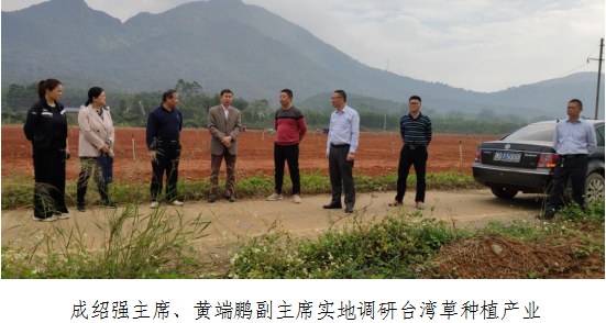 在新江镇凉桥村,成绍强主席一行实地调研台湾草种植产业,对凉桥村因地制宜、盘活抛荒的受污染土地资源,招商引进台湾草种植产业的成果表示肯定,在交流中提出了充分利用好复绿资金等各项政策支持,进一步促进产业发展的意见。