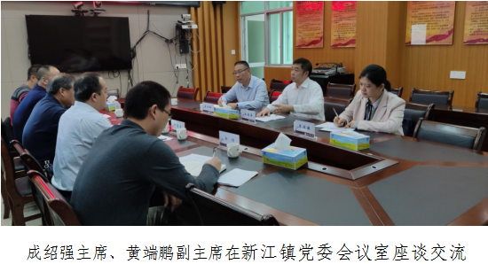 在新江镇西锦村,成绍强主席与驻镇工作队、西锦村两委干部进行交流,强调要落实好乡村振兴政策,把握好重点帮扶村的定位,挖掘现有农业产业,利用好科技支持,为农户增产增收,做大做强村域产业,做到产业兴旺、产业富民。
