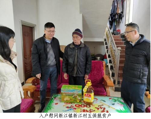 车万里、黄端鹏同志先是同新江镇镇村领导开展座谈交流,调研当地巩固拓展脱贫攻坚成果、深入推进乡村全面振兴和“百千万工程”的进展情况。然后深入低保脱贫户及五保脱贫户家中,认真了解脱贫户生活保障状况,把新春祝福和米面、花生油等慰问品送入家门。最后与脱贫户、五保低保户们交谈,集中了解脱贫群众家庭生产生活情况,并对他们送去诚挚的春节祝福和春节慰问品。