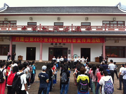 4月月20日,由韶关市国土资源局、韶关市科学技术协会、韶关市地质学会、韶关市丹霞山管委会、韶关市丹霞山旅游投资经营有限公司、广东省地质局第三地质大队、广东省有色金属地质局932队、核工业290研究所、核工业广东省地质调查院、广东省矿产应用研究所等单位联合举办的第44个“世界地球日”科普宣传周宣传活动启动仪式,在风景秀丽的丹霞山风景区举办。