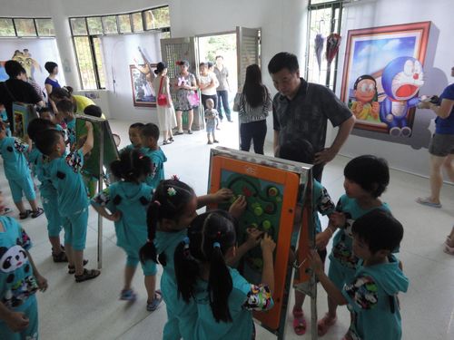 图4幼儿园儿童和家长体验3D科学画展三维视觉效果