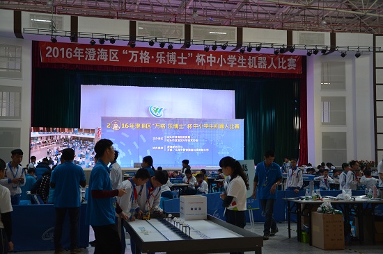 3月27日,由汕头市澄海区教育局、区科协联合主办,澄海职教中心、万格•乐博士教育装备科技有限公司承办的2016年澄海区“万格·乐博士”杯中小学生机器人竞赛在澄海职业技术学校举行。