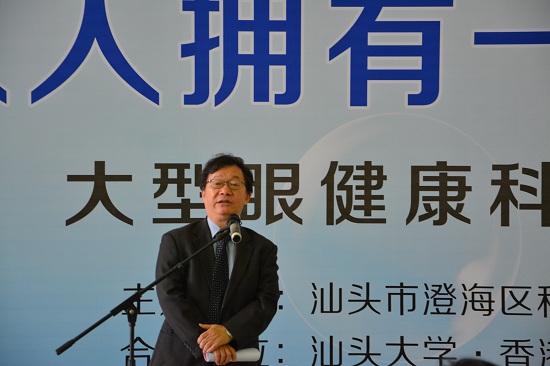 5月10日上午,汕头市澄海区科协、团区委联合汕头国际眼科中心在澄海区启动为期三年的“全民‘亮眼’行动”大型科普宣教活动。省科协副主席吴焕泉、副市长林依民、汕大医学院党委书记石刚刚、汕头大学·香港中文大学联合汕头国际眼科中心院长、香港中文大学眼科研究中心主任彭智培教授、汕头大学·香港中文大学联合汕头国际眼科中心常务副院长张铭志教授、区委副书记黄鹏伟等领导出席了启动仪式。